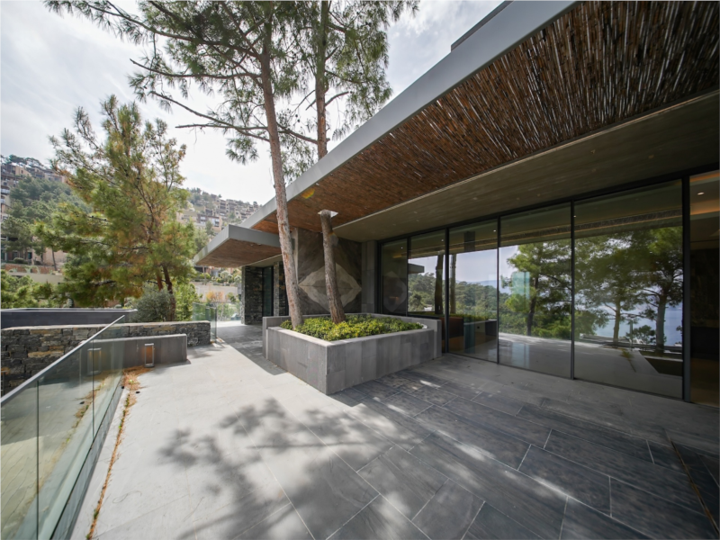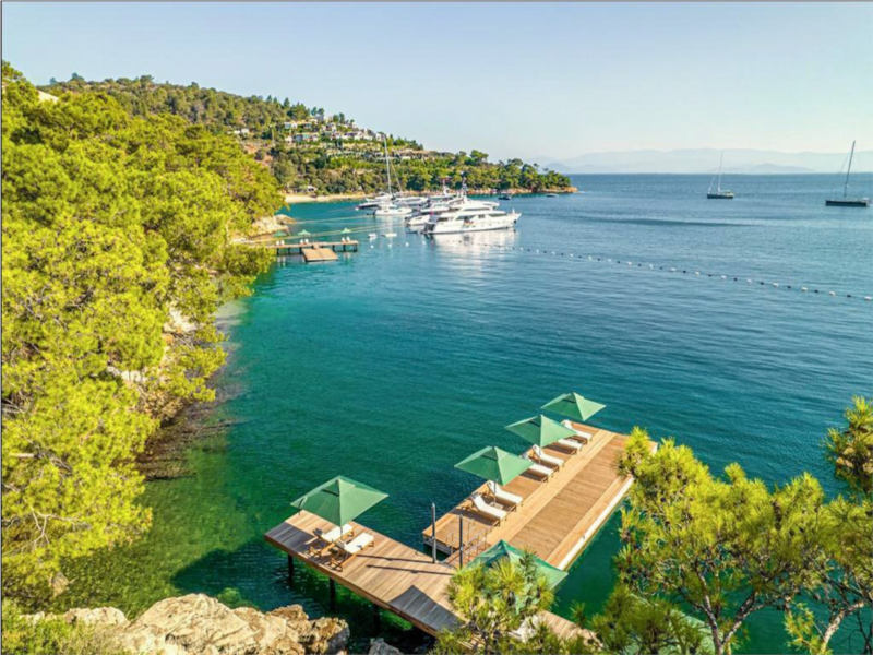 2 kattan ve teras/bahçelerden oluşan, panoramik Ege Denizi manzarasına sahip, yemyeşil bahçelerle çevrili bu özel 5+1 villa; 5 banyo, özel yüzme havuzu, geniş bahçe kullanımı ve özel plaja erişim gibi ayrıcalıklarla lüks yaşamın kapılarını aralıyor. 270 metre uzunluğunda özel plajı, üç ayrı iskelesi, güneşlenme ve dinlenme alanları ve ince kum sahili, denizin keyfini her an yaşamanızı sağlıyor.